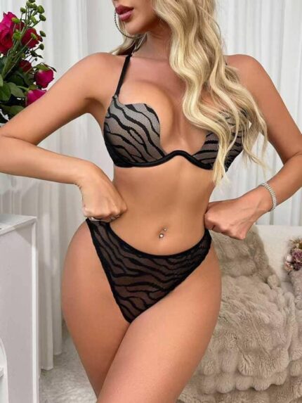 LEOPARD PRINT LACE MESH LINGERIE